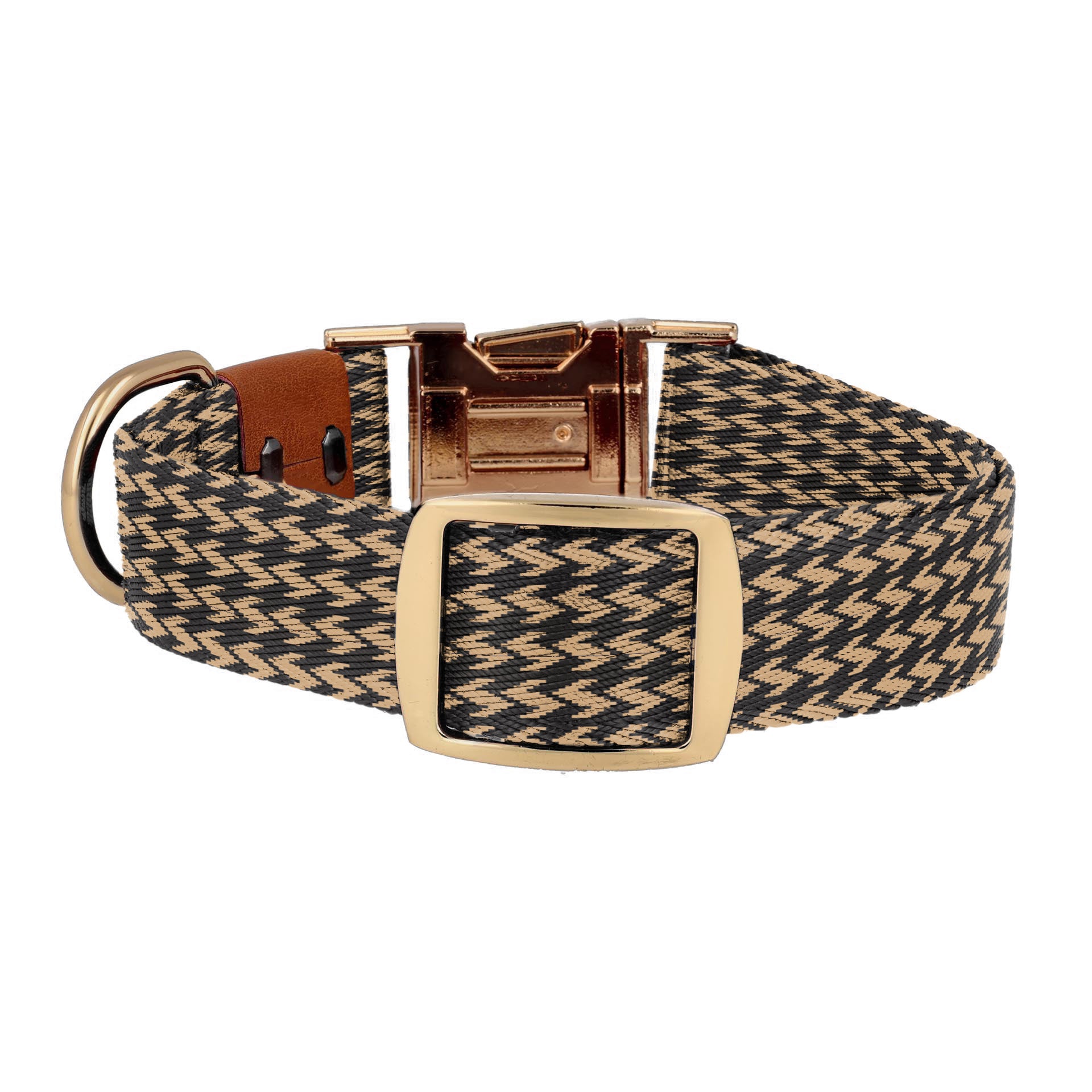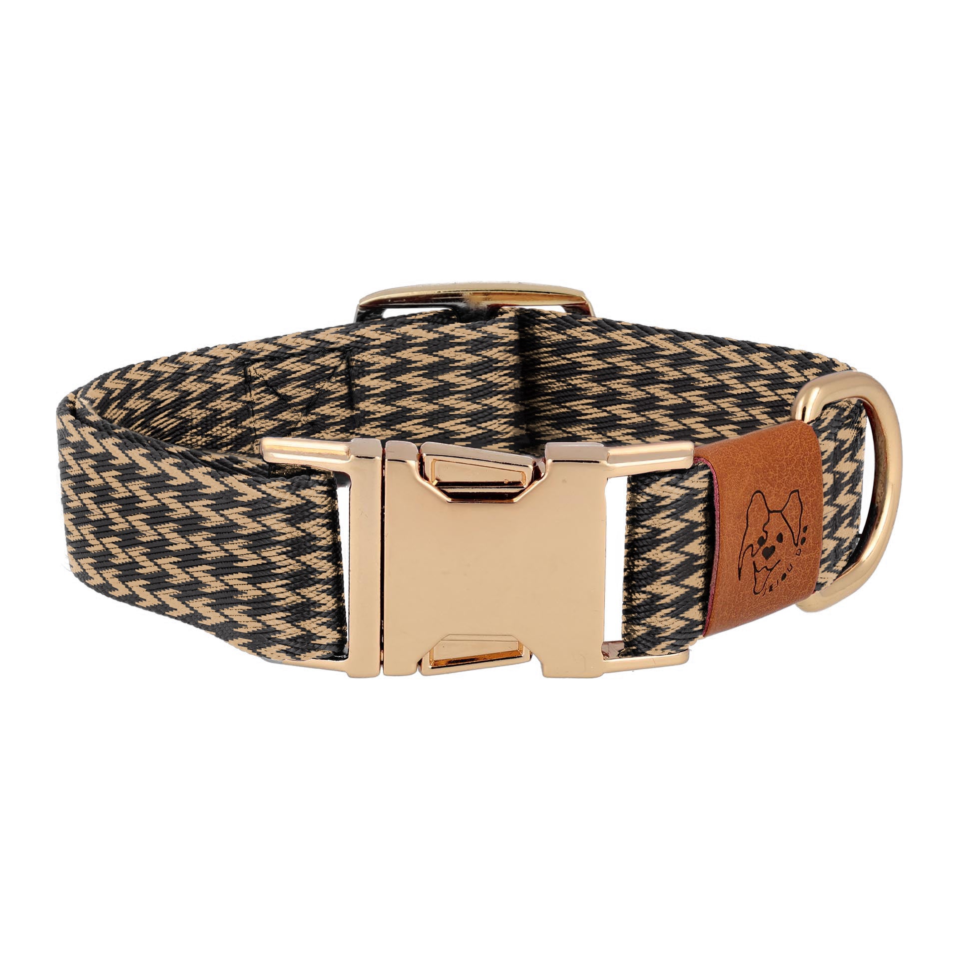 Stylish and durable dog collar made from long-lasting nylon & polyester mix fabric, paired with a scratch-resistant gold buckle, designed in New York.