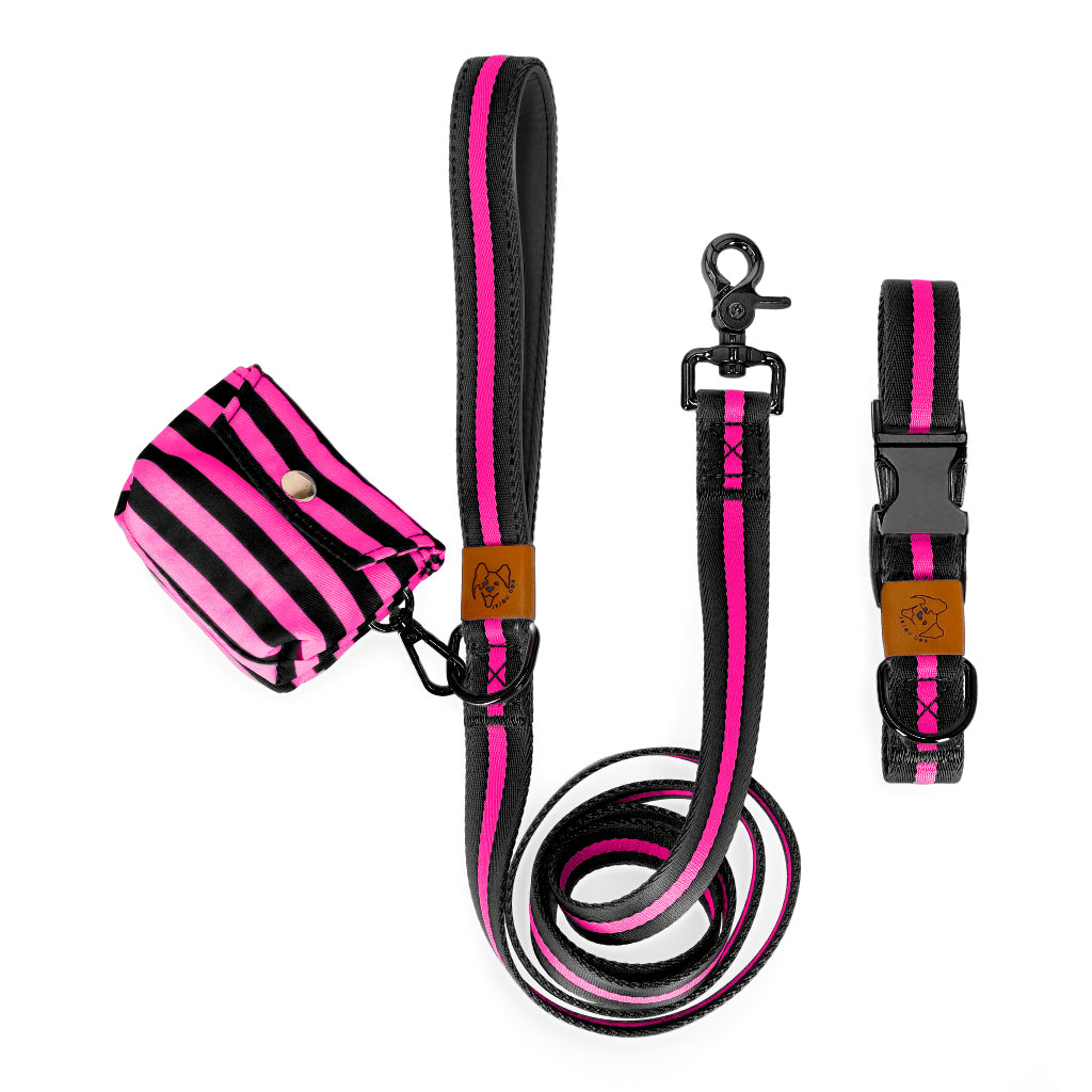 We design matching sets of dog collars, leashes, and waste bag holders that last, using durable, stain-resistant nylon. We want your dog to be an extension of stylish you. We tested our products to be tailored for the dog size, understanding the length and the weight of the product to be completely comfortable for you and your little friend.